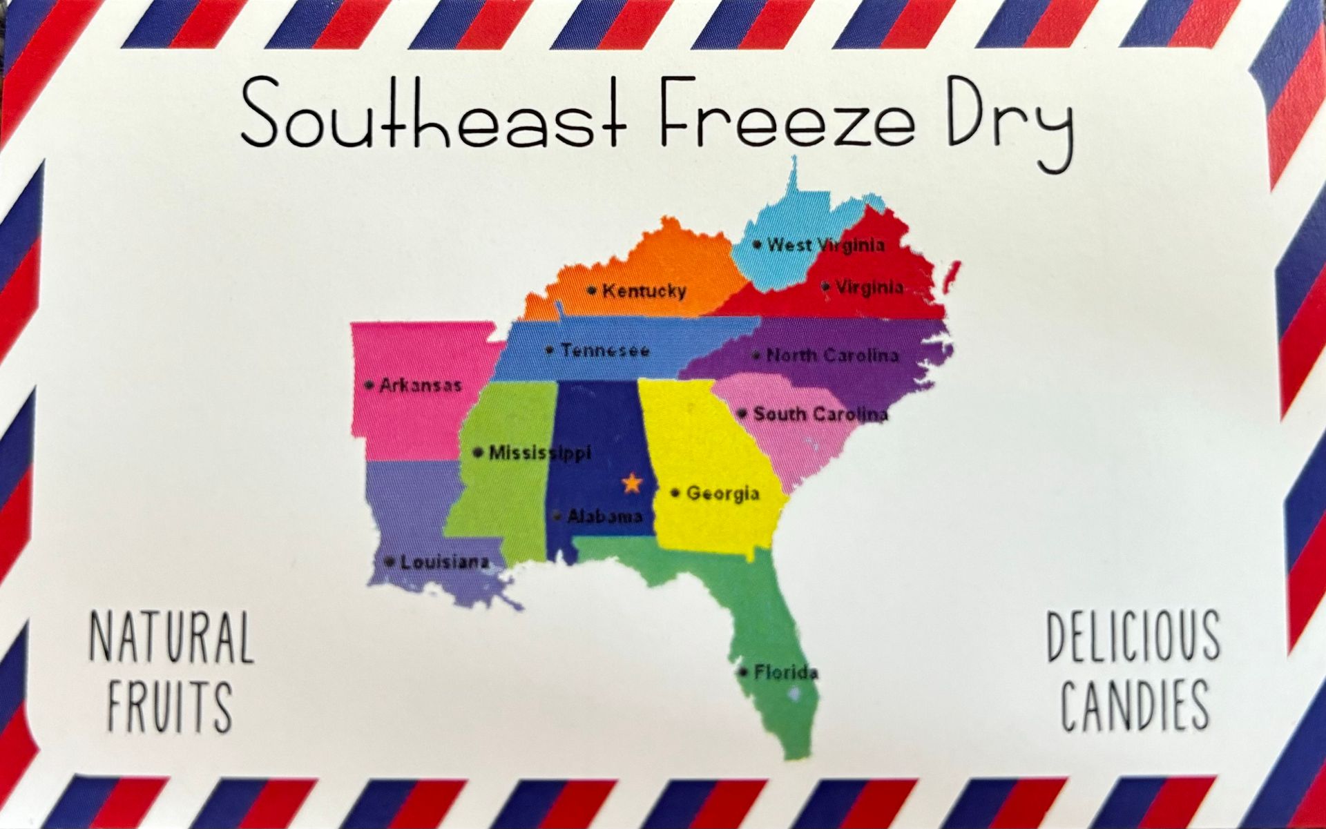 Welcome to Southeast Freeze Dry! We are a locally owned and operated business out of the Auburn Alabama area serving up our delicious freeze dried treats. We offer a variety of freeze dried fruits and candies in order to provide a healthy and or sweet option for everyone! Shipping is available to anywhere in the USA.
